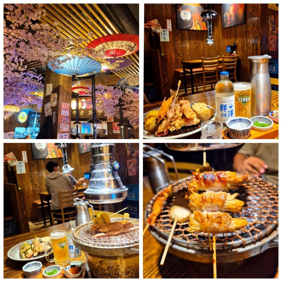 메뉴가 엄청 다양해서 고민하다가 이자까야하면 꼬지지 하고 꼬지 시켰습니다ㅎㅎ 일단 엄청 큰 화로를 같이 주시더라구요! 모듬 시켰는데 종류도 다양하고 진짜 맛있었어요ㅠㅠ 직원분도 너무 친절하셔서 재방문 의사 100입니다😄