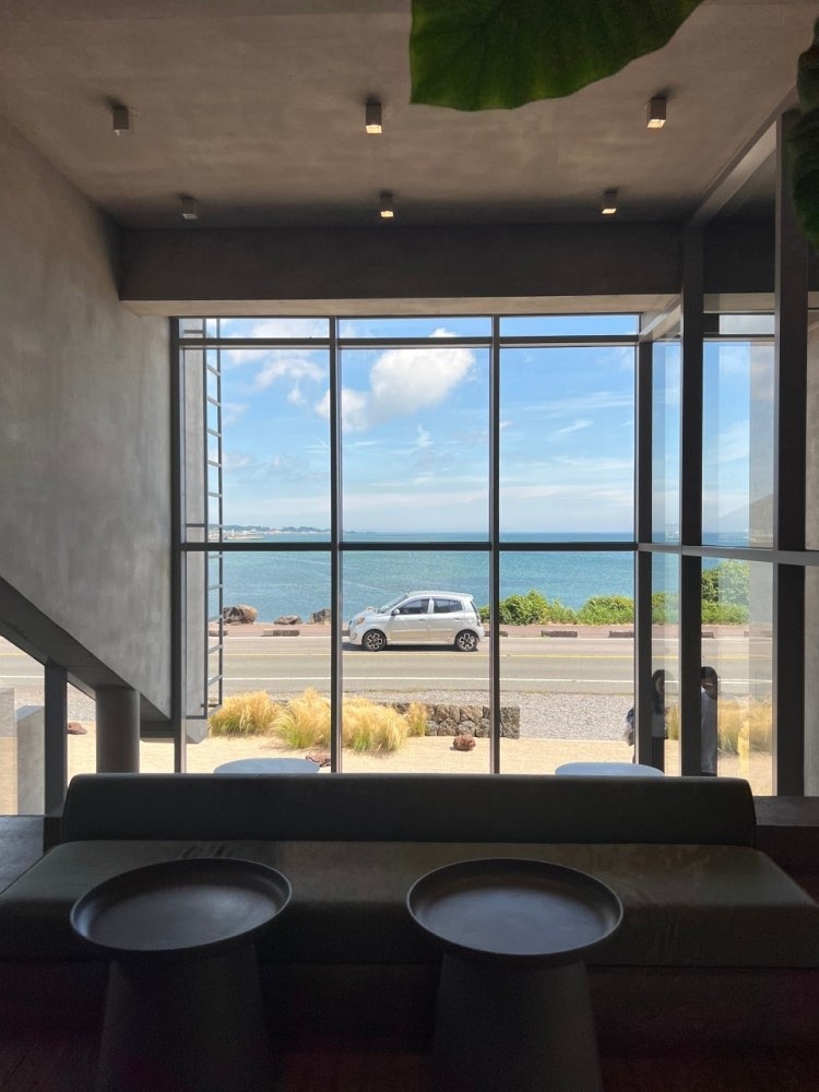 노출콘크리트 건출물이 시원하면서, 앞으로는 바다가 보이는 오션뷰, 뒤에는 제주st 당근밭뷰 초록초록해서 넘 힐링인 장소에요:) 곳곳에 건축 인테리어미가 돋보이고, 커피와 베이커리도 다양해서 취향껏 먹을 수 있네요. 딱 원했던 '제주스러운 카페' 입니다. 강추입니다😃👍👍