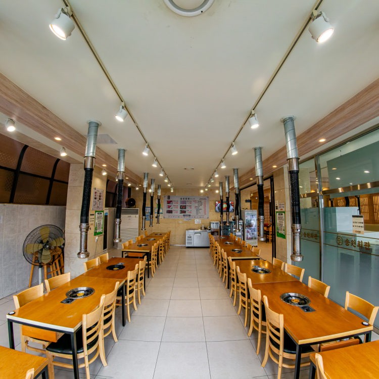 외관은 깔끔하고 맞은편에 주차장이 있어요. 자리는 넓은 편이에요.