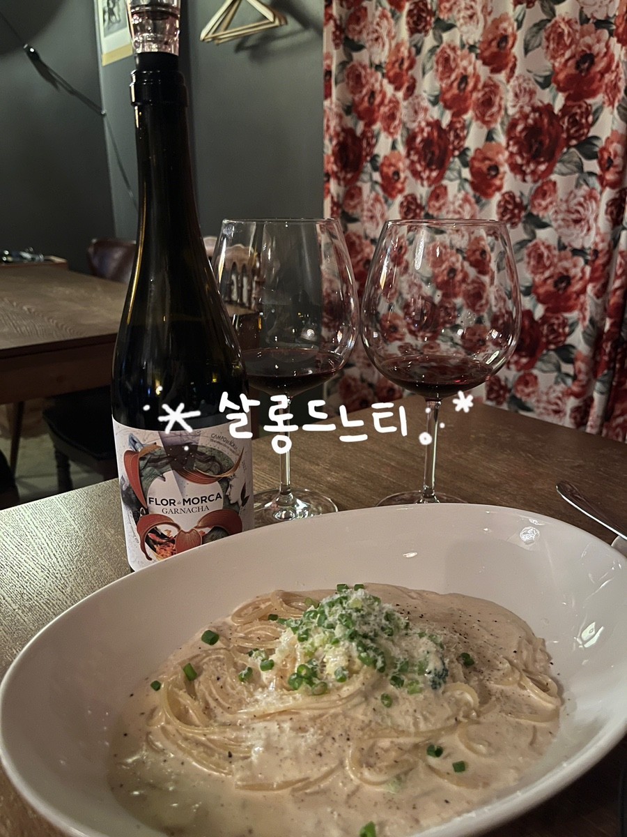 처음 방문했는데 분위기너무 좋고 와인종류가 많았어요! 와인에 대해 잘 몰라서 뭘 마셔야할지 고민했는데 사장님이 친절하게 와인 스타일이나 어떤느낌을 원하는지 물어봐주시고 와인추천해주셔서 맛있는 와인 마셨어요!! 또 파스타랑 리조또 너무 맛있었어요 오랜만에 파스타 맛집을 찾았네요..