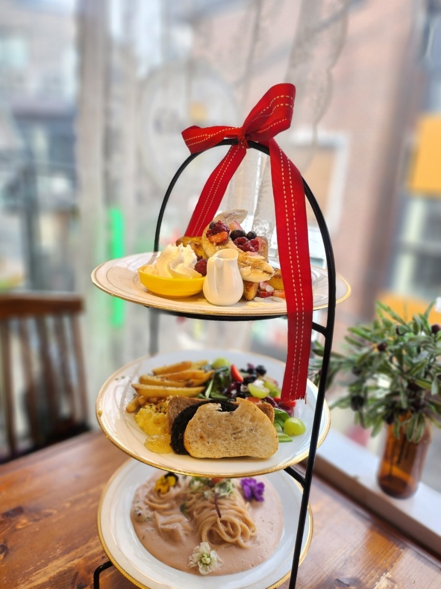 청첩장 전달해주려고 정한 식사장소인데 3단 브런치가 너무 맛있어보여서 오게되었어요. 실제로는 3단트레이가 너무 웅장했구 비주얼도 엄청나요! 음식두 맛있게 잘먹었습니다!! 파스타가 특히 맛있었어요~ 에피타이저부터 디저트까지 코스로 즐긴 느낌이나요~