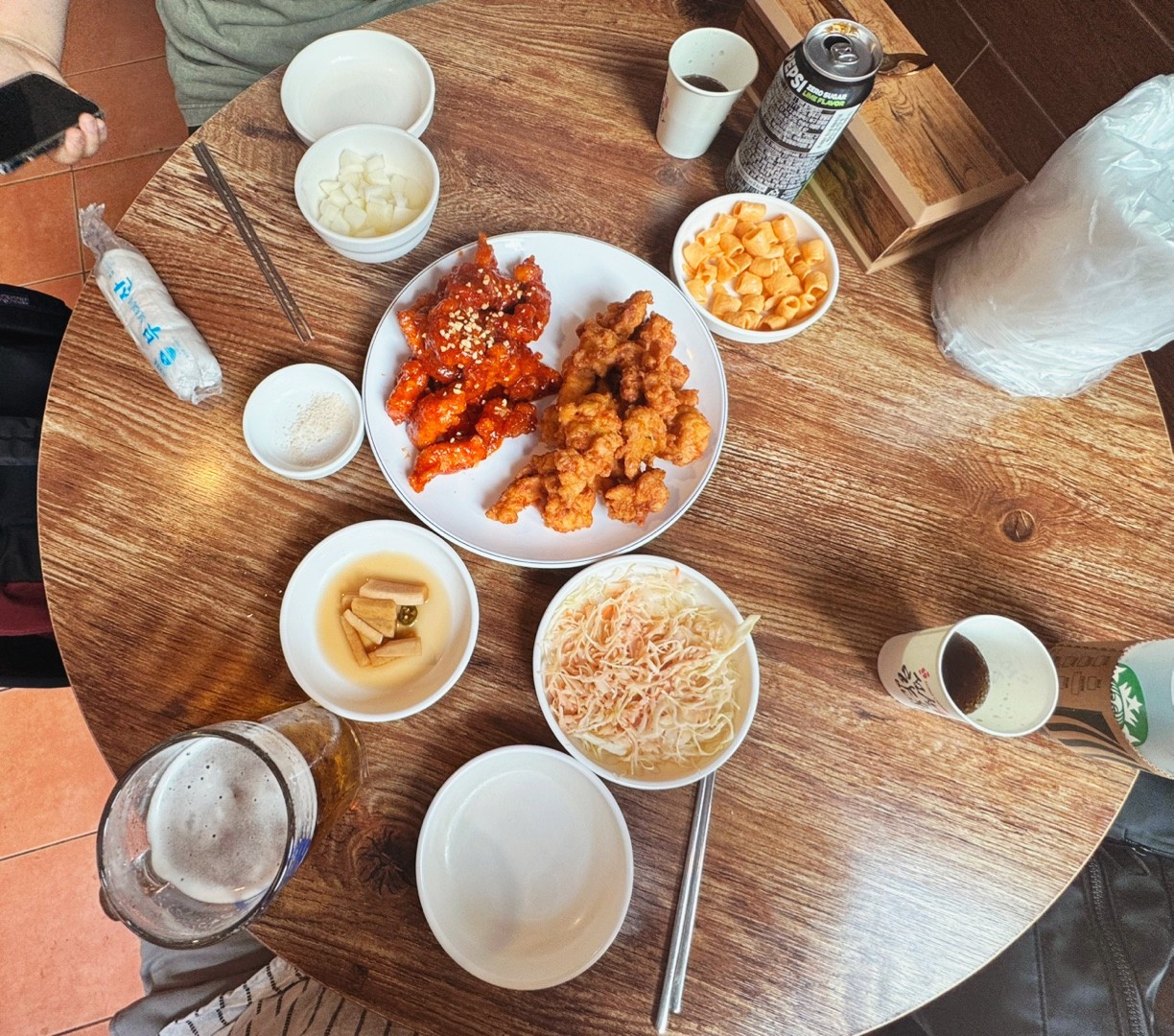 오래된 서면맛집 중 하나인 해피통닭에 드뎌 왔어요🍗 남자친구가 엄청 맛있다고 꼭 가야된다했는데 정말 치킨 앙도 많고 바삭하니 맛있더라구요🤤💦 그중에 똥집후라이드는 정말 부드럽고 쫄깃한 맛이 최고니까 꼭 같이 드세용..💗